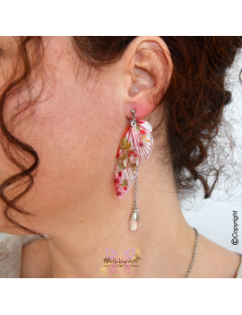 Cette paire de boucles d'oreilles est une création artisanale avec chaîne et attaches de boucles en acier chirurgical ornée de nature et de Fées enchanteresses. C'est une création limitée.