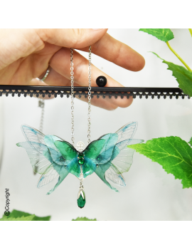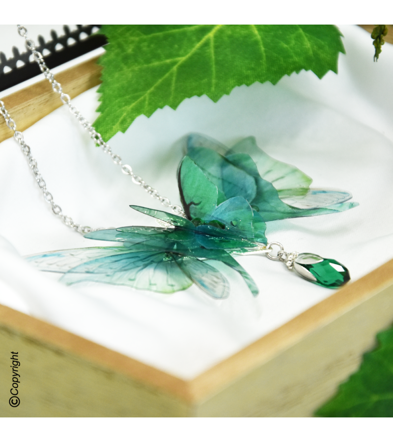 Je me suis inspirée du monde féerique des Sylphides pour créer ce bijou aux ailes de Fée ornées de cristal.