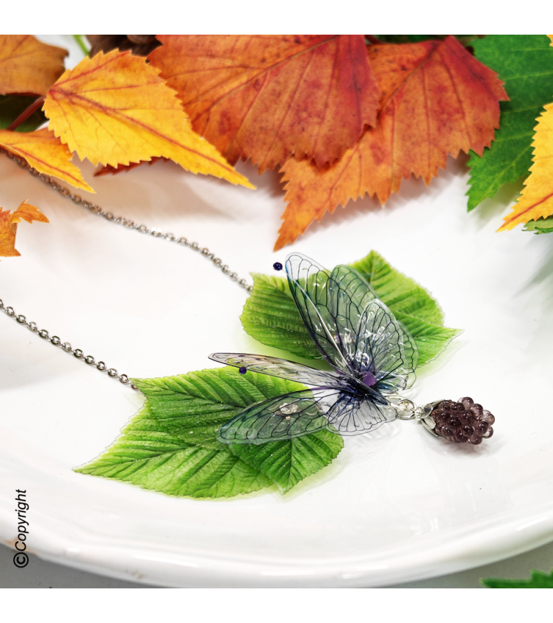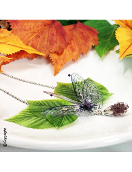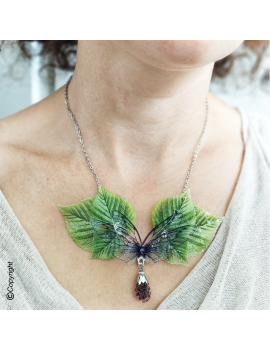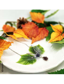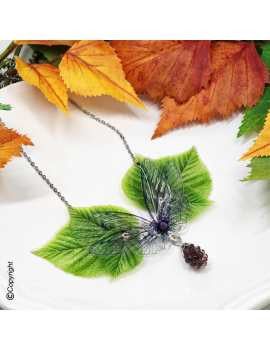Je me suis inspirée du monde féerique et de l'automne pour créer ce bijou orné des dernières feuilles vertes de l'Automne.