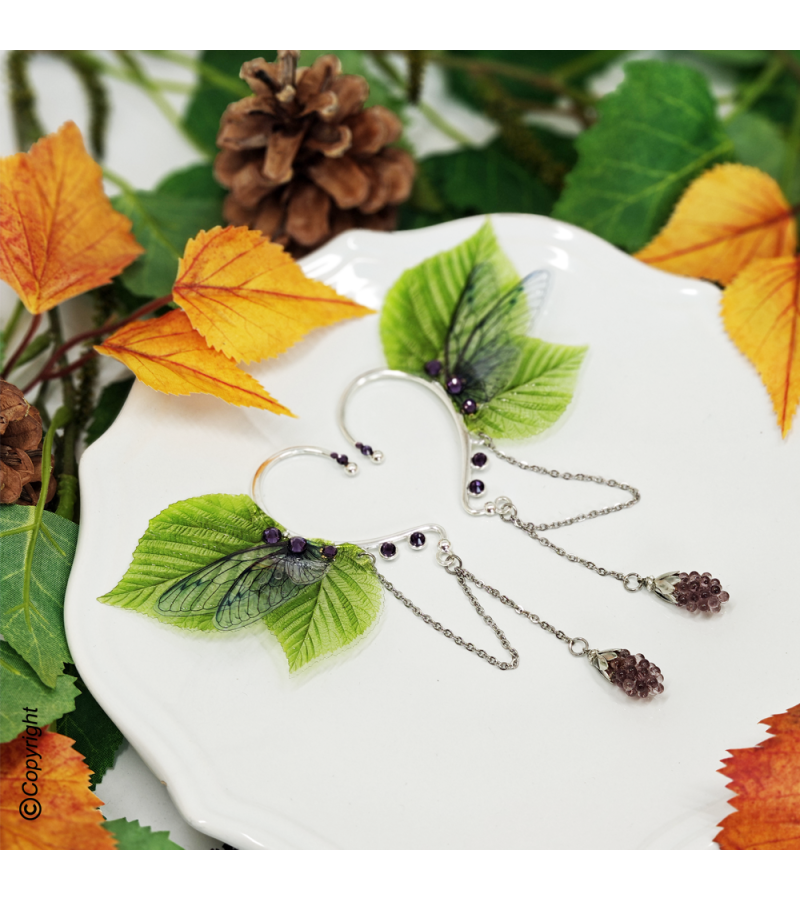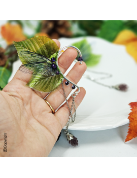 Je me suis inspirée du monde féerique et de l'automne pour créer ce bijou orné des dernières feuilles vertes de l'Automne.