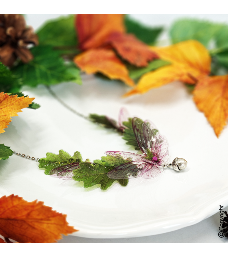 Je me suis inspirée du monde féerique et de l'automne pour créer ce bijou orné de feuilles de chênes.
