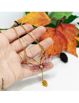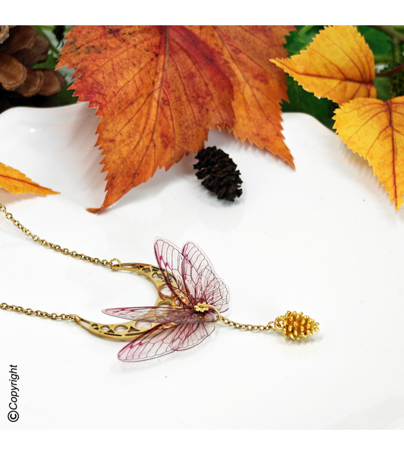 Je me suis inspirée du monde féerique et de l'automne pour créer ce bijou orné de fée, de la lune et d'or.