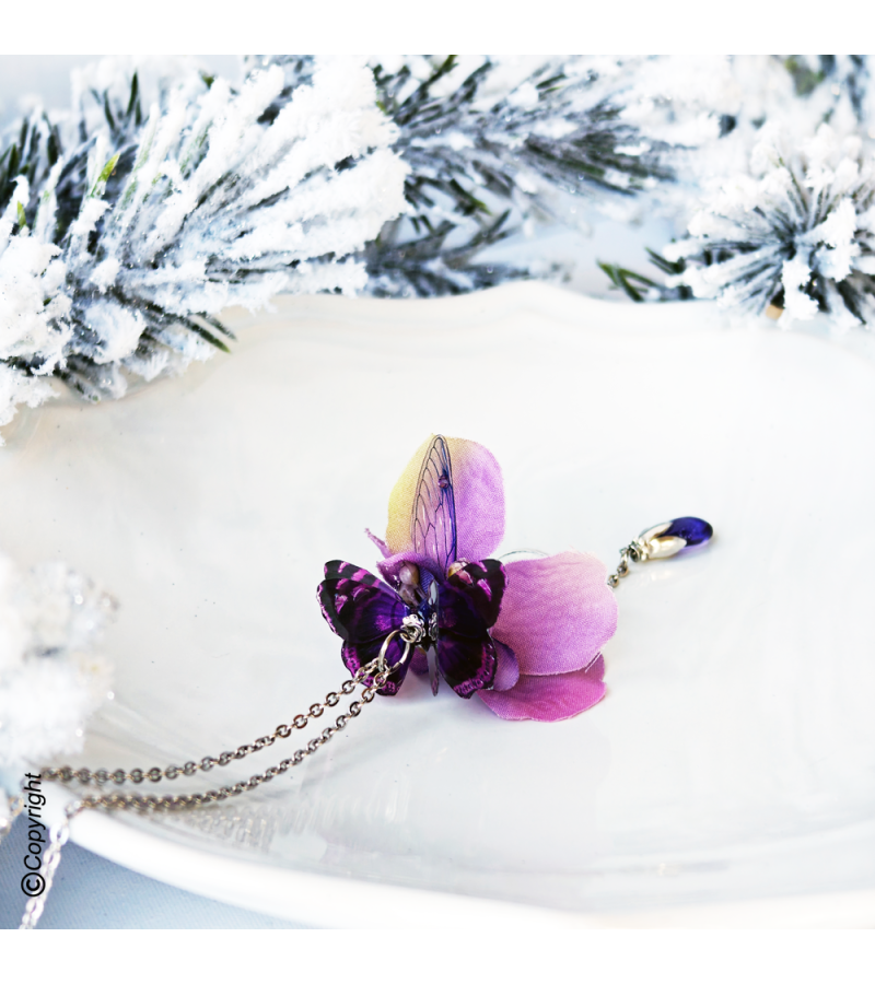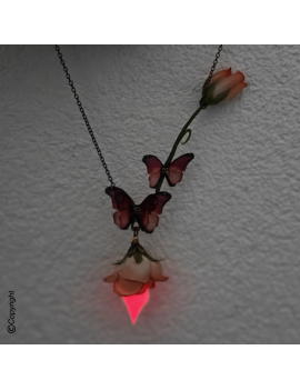 ✨ Cette création est ornée d'une aile de fée et d'un papillon flexibles, d'une fiole en verre contenant de la poudre phosphorescente recouverte de pétales de fleurs en tissu.