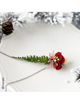 Pour les âmes amoureuses de décembre ce bijou est une étreinte de rouge et de verdure de fougère.