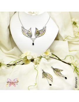 I took inspiration from the fairy world to create this jewel with iridescents fairy wings and crystals.