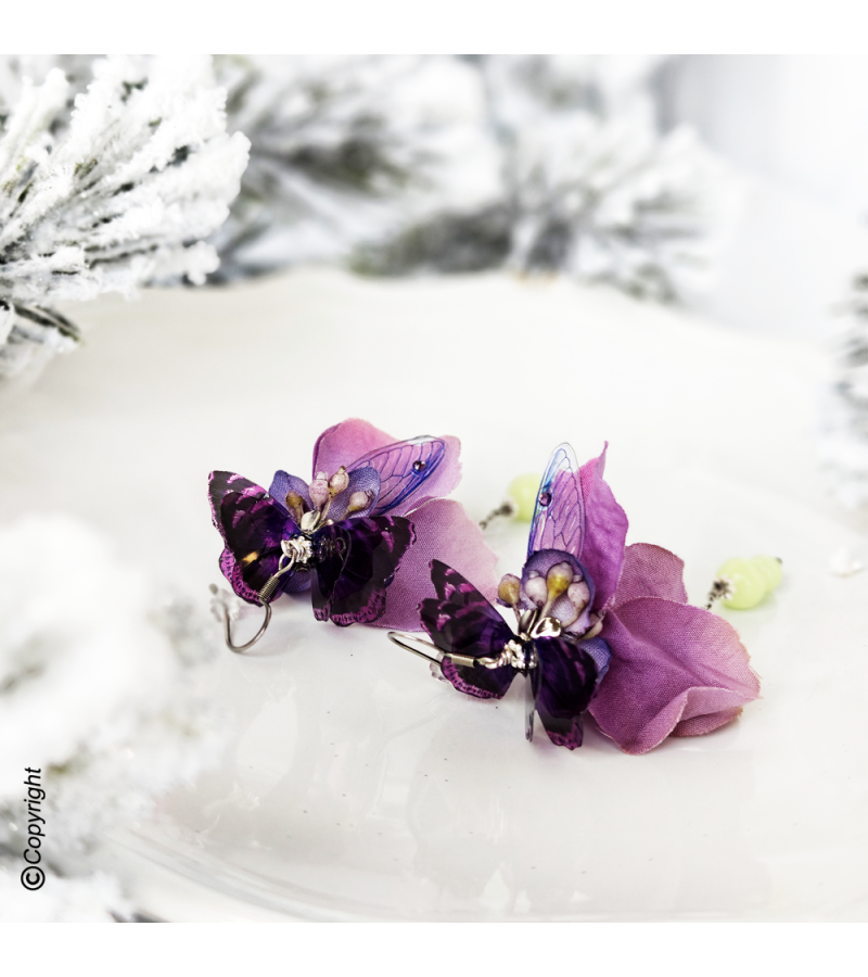 ✨ This creation is adorned with a flexible fairy wing and butterfly, phosphorescent pearls covered with fabric flower petals.